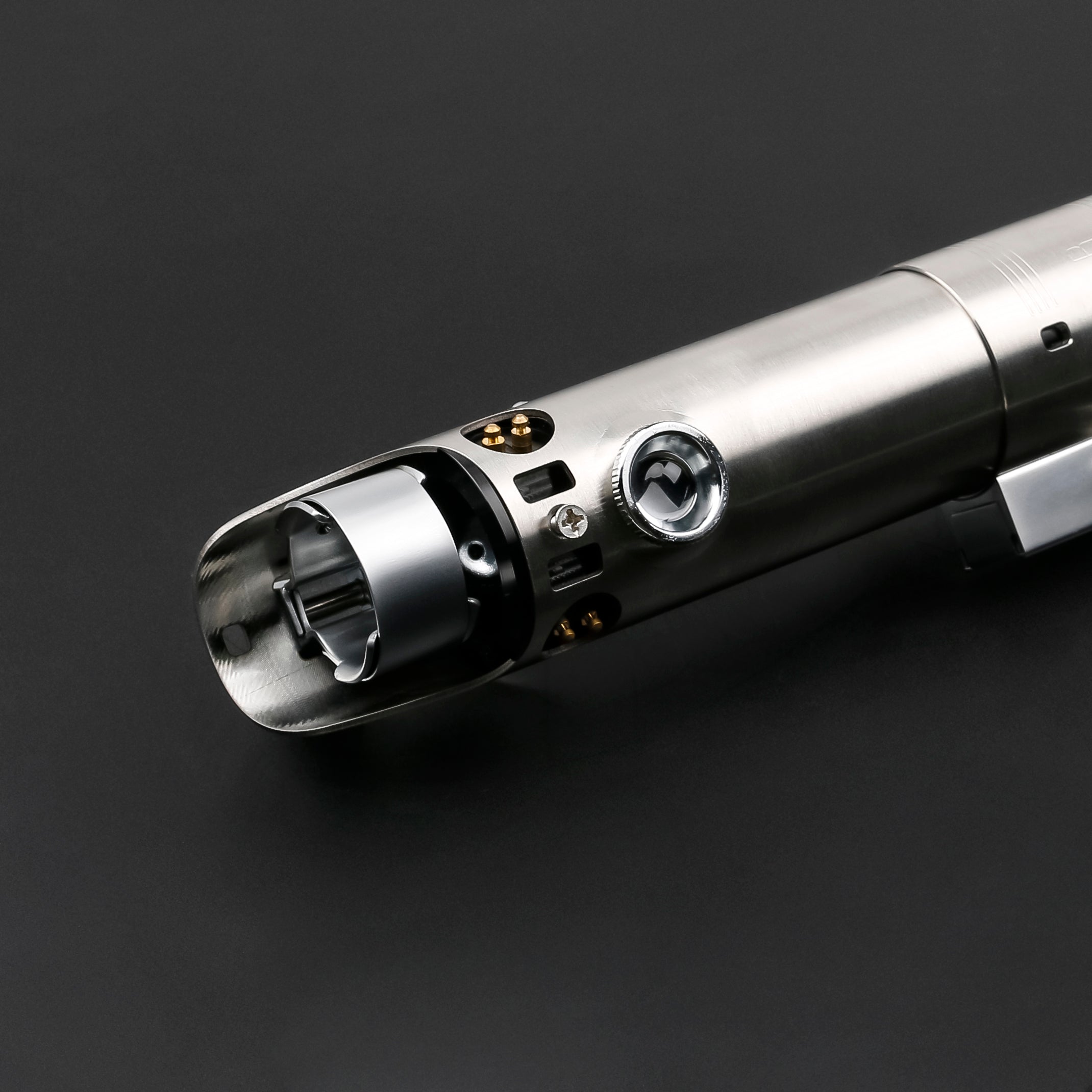 Its elegant silhouette and exquisite details exude a mysterious and sophisticated power. The black and silver color scheme enhances the metallic texture, creating a noble and majestic aura. The Vortix Blade EP7 lightsaber strikes a perfect balance between beauty and power, and will stand out in any collection or duel.