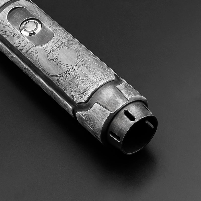 The Padawan-E29-A is a stunningly crafted RGB/Neopixel Saber with a round grip for maximum comfort and convenience. Its hollowed-out emitter allows the light to shine through for maximum effect and its D-ring attachment ensures easy carrying. With its remarkable precision and detail, this saber is perfect for warriors alike.