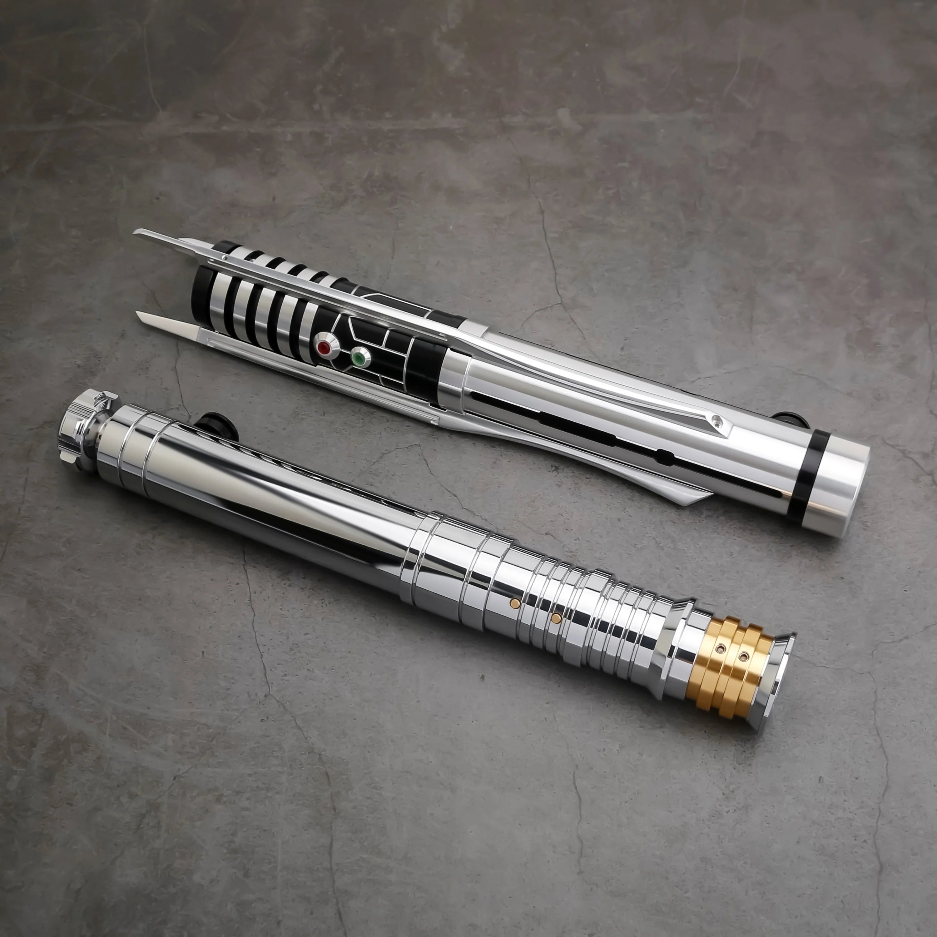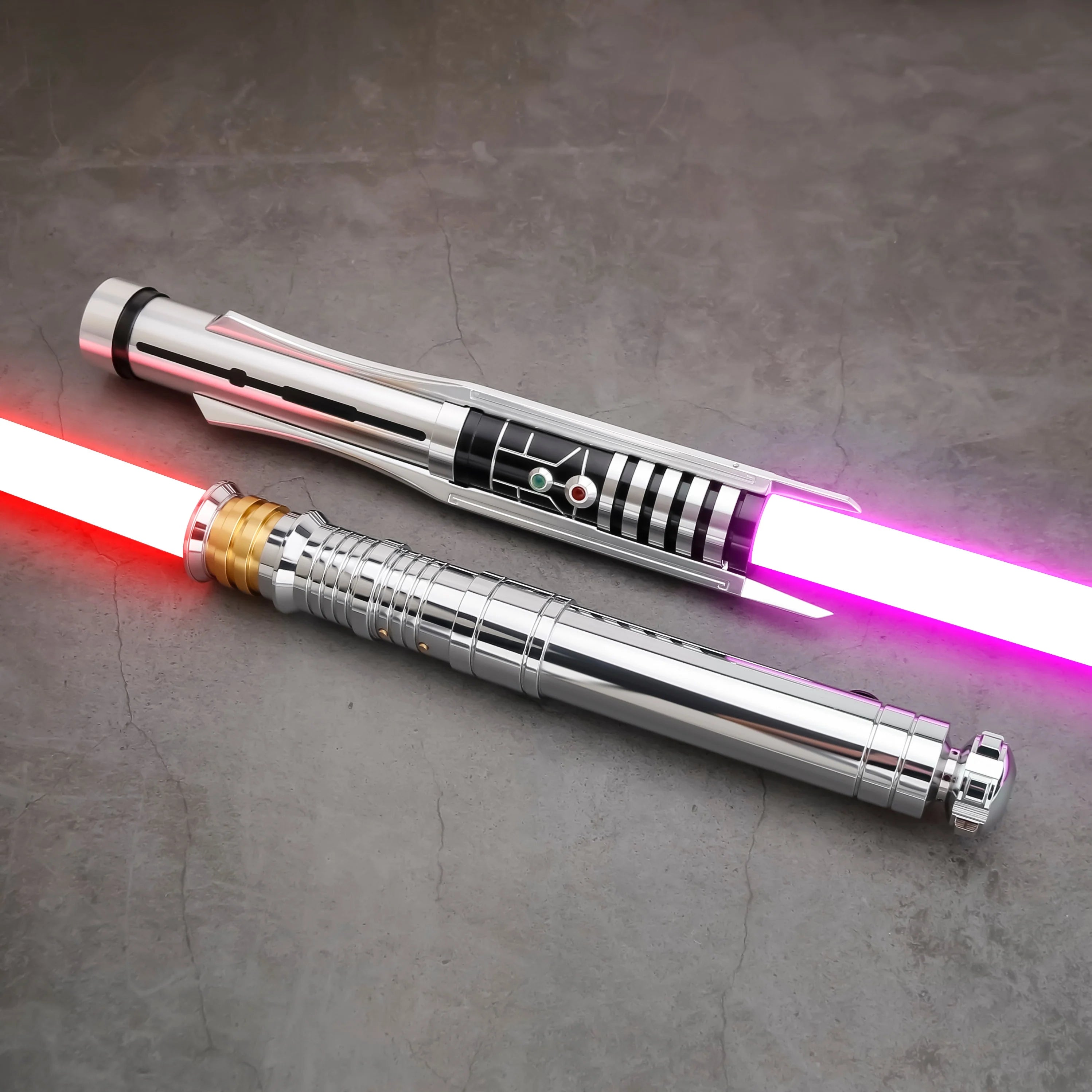Both sabers deliver vibrant LED lighting, immersive sound effects, and durable construction perfect for display or light sparring. Designed for collectors on a budget, this bundle brings cinematic storytelling to your shelf without compromise. The set includes a dual charging station and a certificate of authenticity for display.