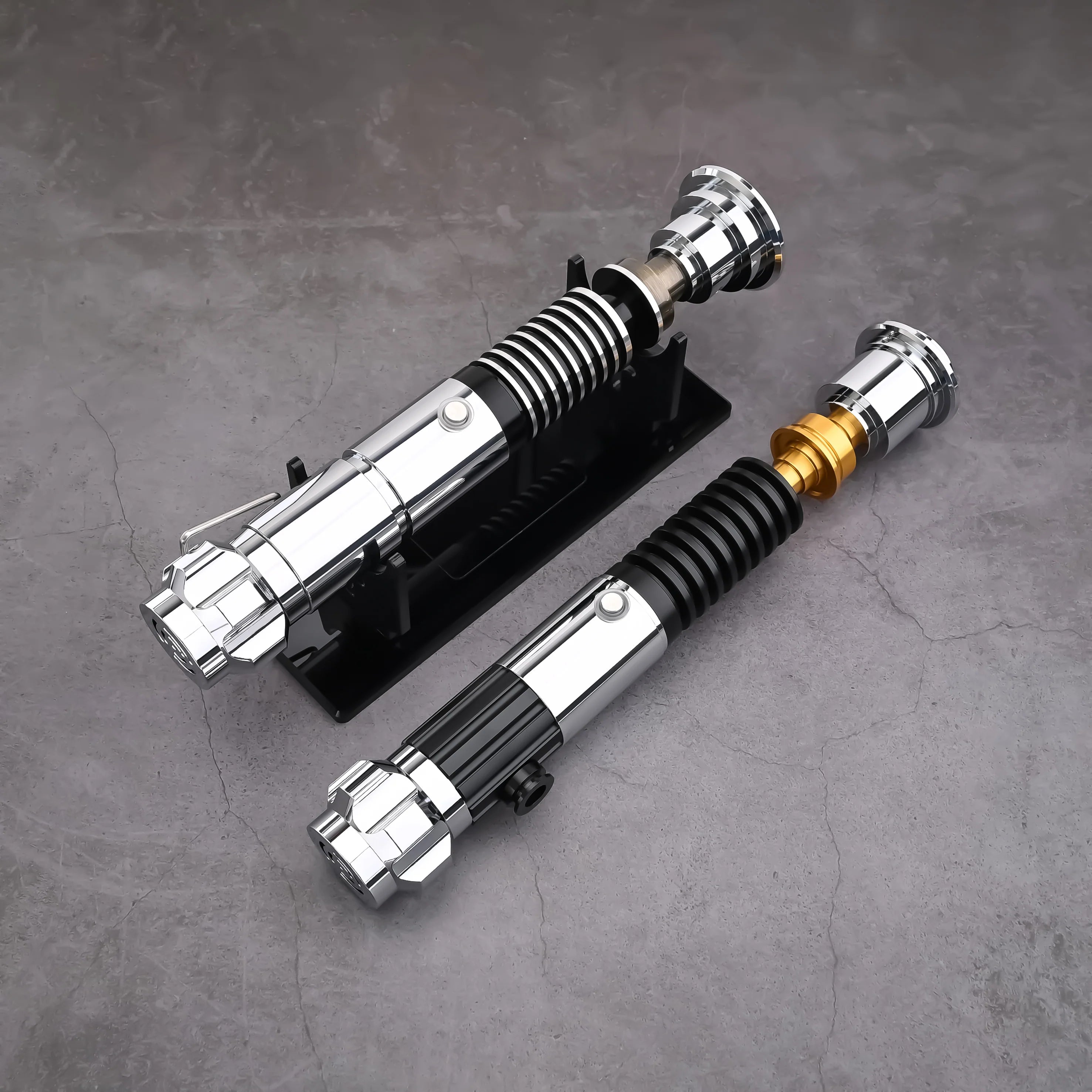 Both sabers are equipped with bright LED illumination, responsive sound systems, and durable hilts designed for training or display. Crafted with quality at an accessible price, this bundle invites mentors and beginners to explore the art of light-based combat. The set includes a dual charging dock and matching display stands for side-by-side presentation.